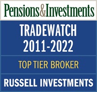 From August 2011 to March 2022 (37 out of 42 quarters), Russell Investments Implementation Services, LLC was ranked as a top-tier broker in Pensions & Investments’ (P&I) Tradewatch report based on the quality of its trade execution. In 2023, P&I discontinued their report.