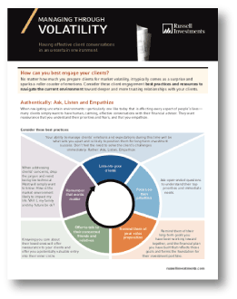 Reach out to your Russell Investments dedicated regional team for support: Whether it’s guidance on crucial client conversations, analyzing portfolios, framing market commentary in a client-friendly manner, or accessing business solutions tools and resources to run your business like a CEO—we are your partner.
