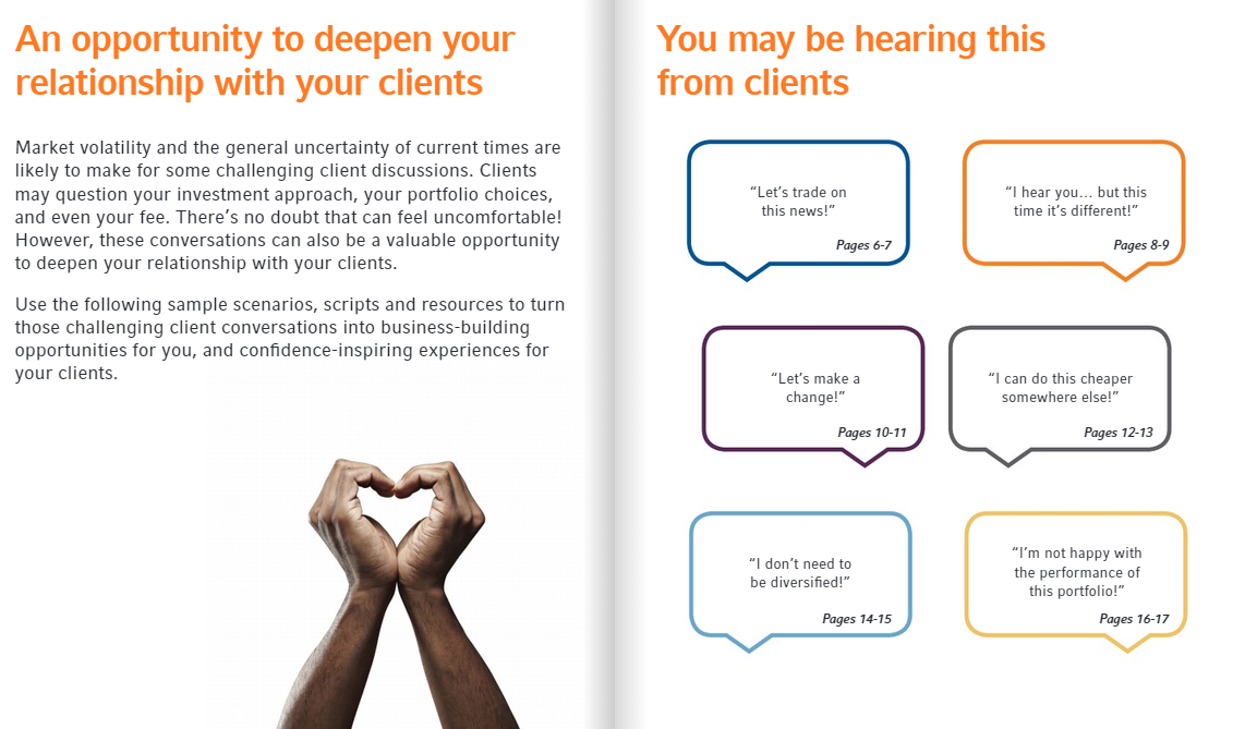 - Perspective. Share your perspective on the current world events, market developments and the value of a relationship with a trusted advisor like you.